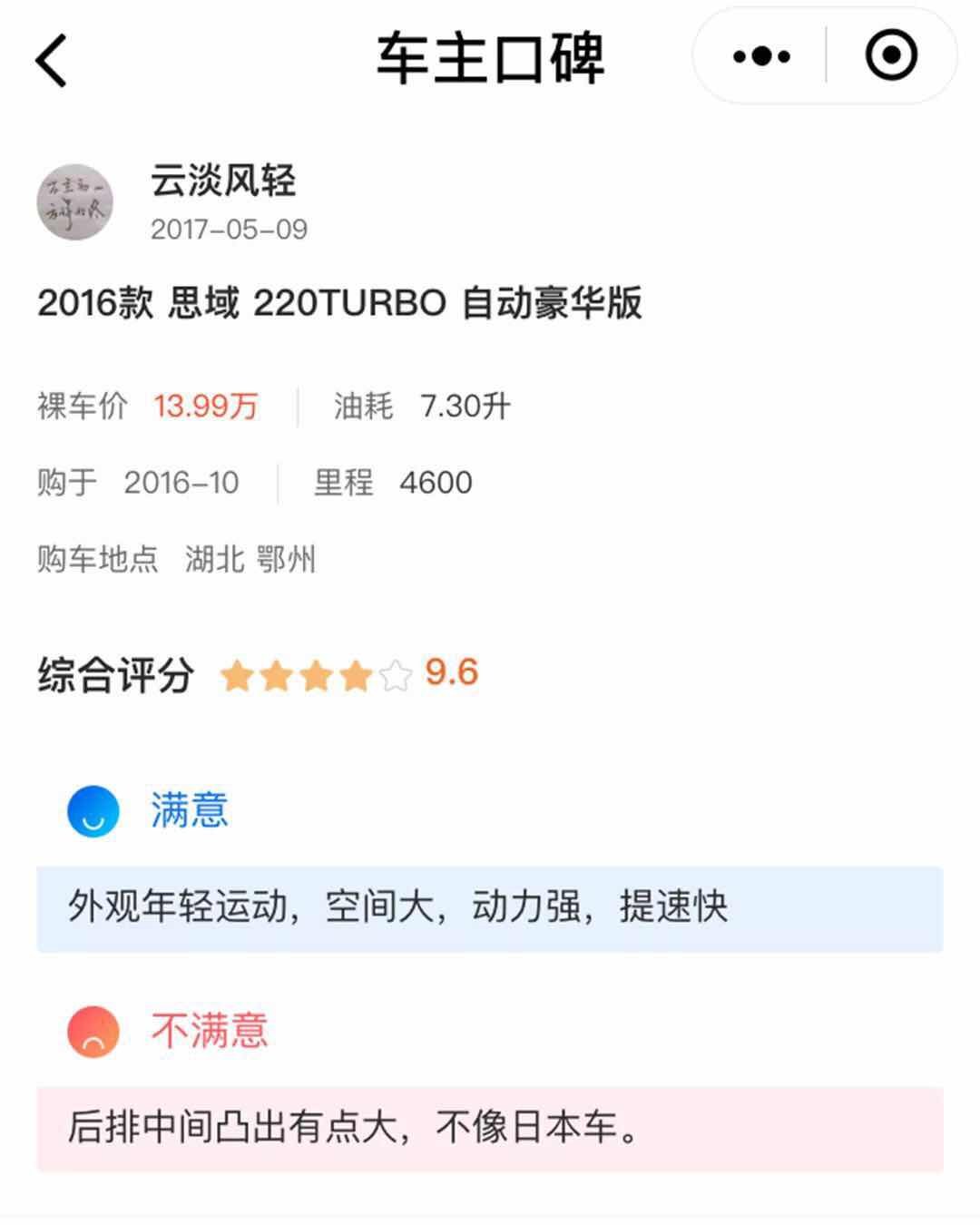 思域和其竞争对手对比起来,保值率相对来说还是很高的,新车使用三年后残值率为65.74%,就二手车市场来看,思域的性价比相比新车更高些,相同的配置价格便宜的也是不止一星半点。