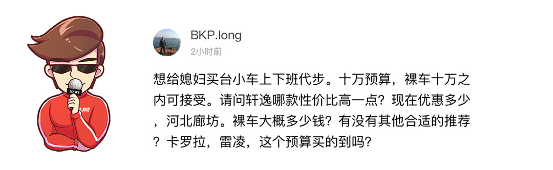十万预算的话推荐威驰、致炫或者Polo等比较不错的合资代步小车,其中威驰、致炫全系标配ESP电子车身稳定系统,还是比较良心的,自吸发动机搭配CVT变速器也能带来非常不错的平顺性,而Polo空间虽小,但是其隔音滤振表现在同级别中属于佼佼者,开起来也很灵活。轩逸2018款 1.6XV CVT尊享版性价比较高,河北廊坊的参考优惠在两万元左右,手持十万的预算很难买到卡罗拉,轩逸和雷凌。