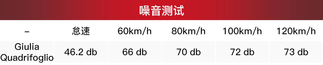 Giulia Quadrifoglio虽说是一台运动车,但他的隔音水平并不差,处于该级别的平均水平。在高速巡航的状态下,噪音的音源来自风噪和发动机的吼叫,路噪相对不明显。