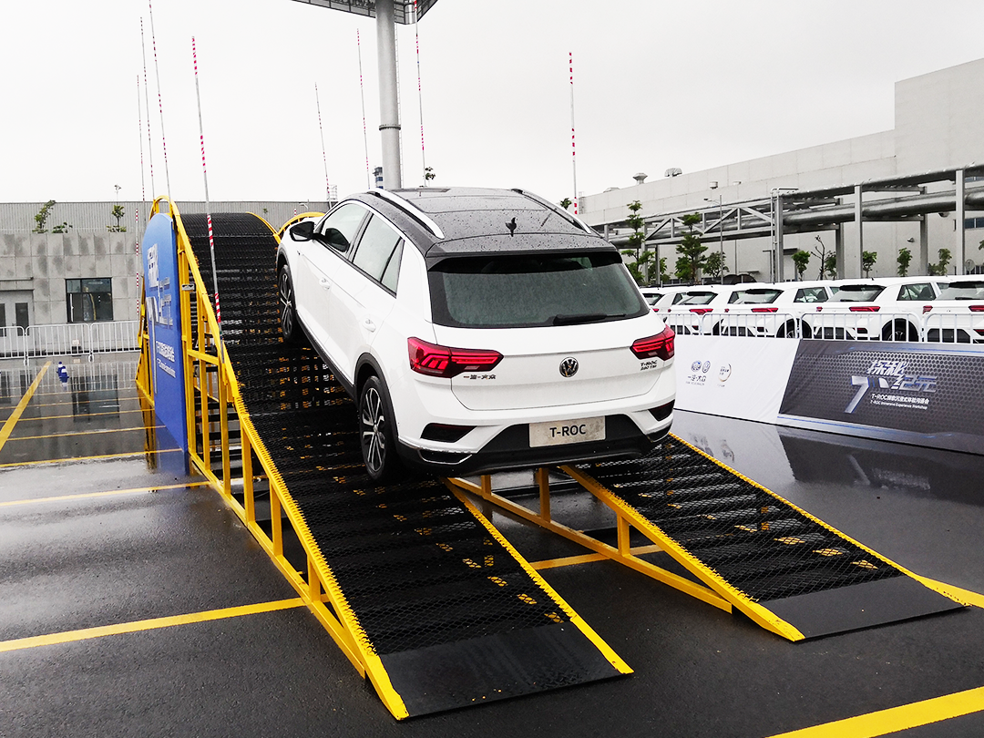 第三个项目是上20度的侧坡,1.4T的动力保证了探歌可以轻松攀爬。上到侧坡以后,靠近地面一侧的车轮并没有被明显压缩,支撑性不错。第四个项目阶梯路,探歌线性的输出使其应对从容,高级的质感使车内的乘客不至于颠得难受。