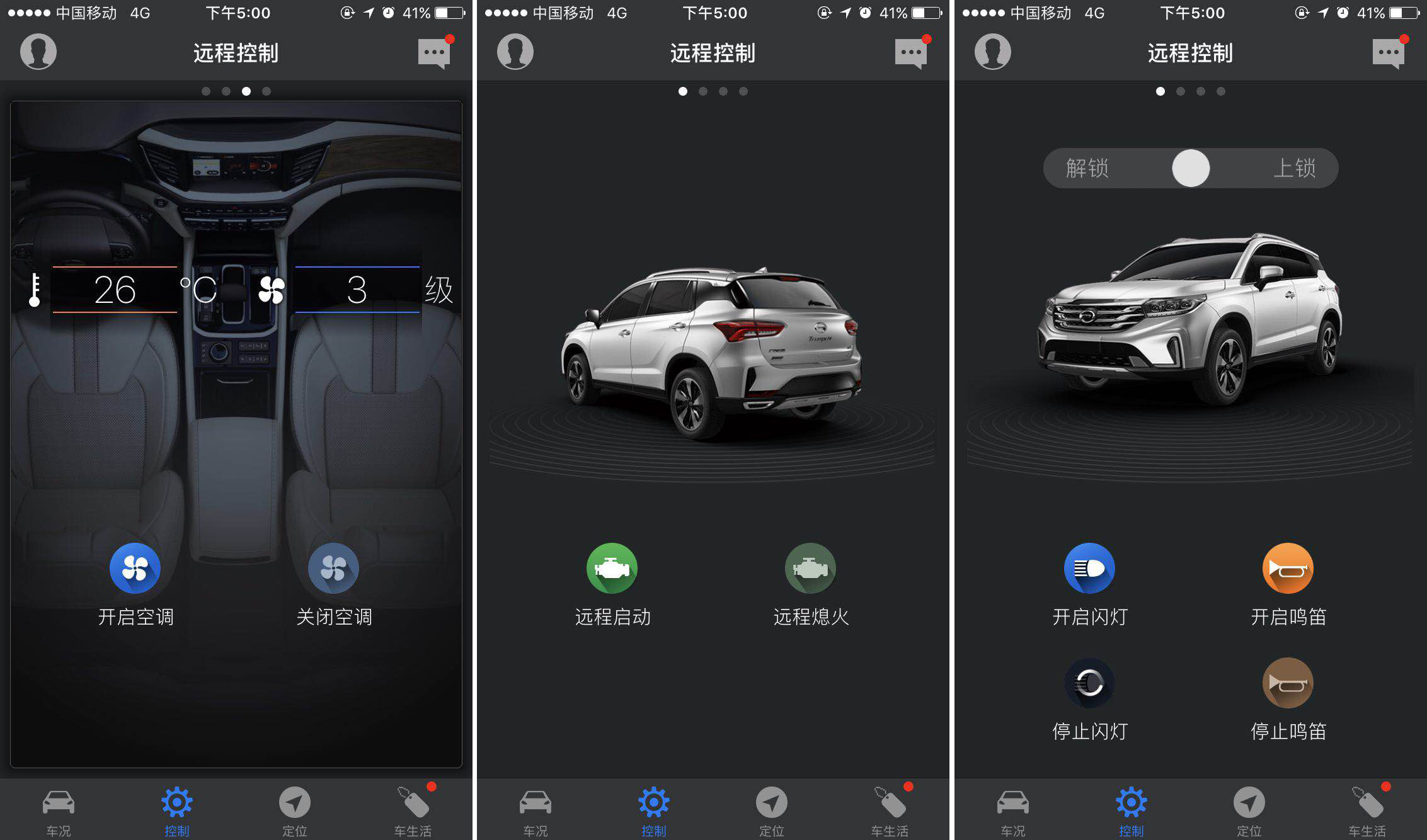 值得一提的是,祺云智联系统还可以通过手机对车辆进行操控,实现车辆的远程启动、空调及灯光的远程控制等。
