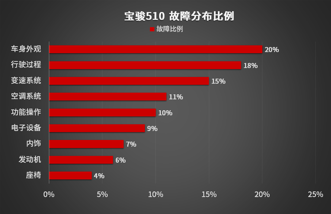 宝骏510目前在市场上还没有保值率可供参考,不过教授相信它能凭借高性价比与不错实用性获得良好的市场口碑。另外在可靠性方面,宝骏510的故障数为460,相比同级别均值325来说不免有些偏高了: