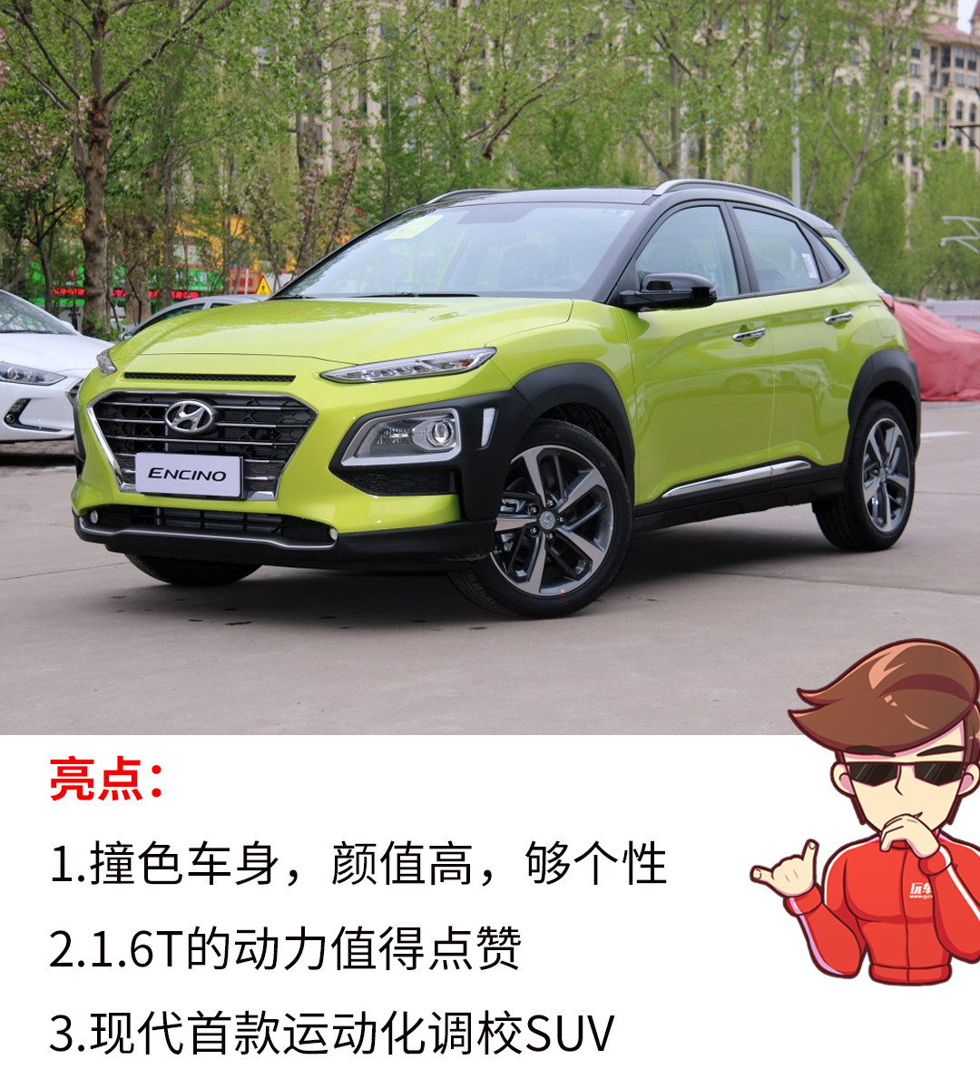 教授说:海外版KONA即为国内上市不久的ENCINO车型,撞色系车身,个性化的高颜值异常吸睛,运动的格调更是俘获众多年轻人的芳心;全系使用的1.6T+7DCT的动力总成,峰值扭矩达到了265牛·米,动力输出很直接,加速感非常明显,刚上市就豪言挑战思域Type-R。不过,ENCINO的配置和做工走的完全不是韩系车所走的高配路线,这点倒是在教授的意料之外。