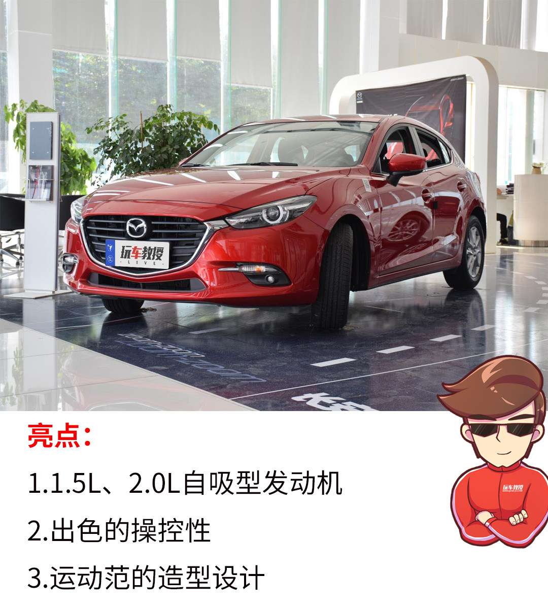 教授说:马自达凭借独有的“创驰蓝天技术”、“人马合一”的操控感以及魂动红造型在众多消费者心中留下了深刻的印象,独有的加速度矢量控制系统,能够精确的控制车辆扭矩的输出,从而确保车辆过弯时的稳定性,压燃比高达13的创驰蓝天发动机对车辆的燃油经济性和动力性也起到了完美的兼顾。至于配置则以实用性为主,但高配的车型还配备了HUD抬头显示功能以及主动刹车系统等配置,这点很点赞。