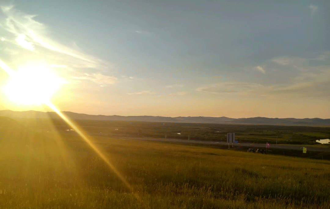 这天恰好是夏至,太阳直射点在北回归线,白昼的时间是一年里最长的,教授也发现了在完全没有建筑物的野外环境上观察中国最晚的日落,确实美不胜收!