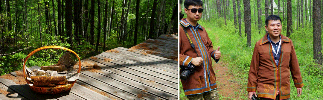 接着我们穿着鄂温克族的特色服装,上山去采集他们民族重要的物资--白桦树皮。山林上的原创的生态环境让人放松,就算是最晒的下午时分也不怎么觉得热。