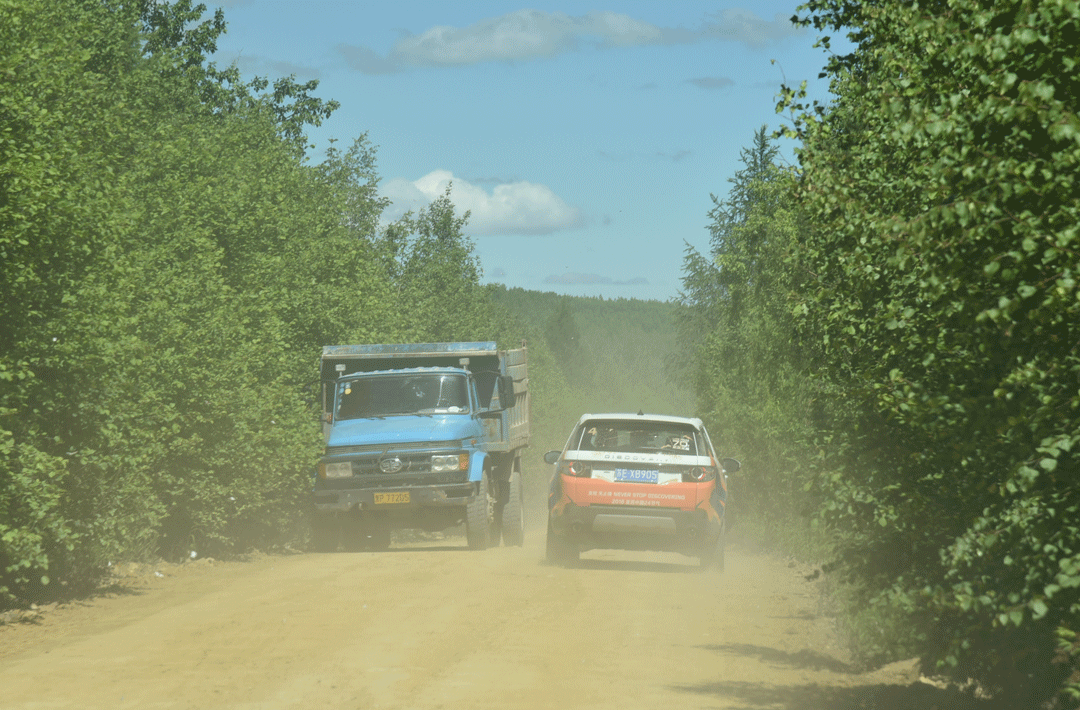 进入到泥土路面,编队驾驶的我们能从对讲机哪里听到前发的路面和对向车辆信息,所以能以较高速度行驶。