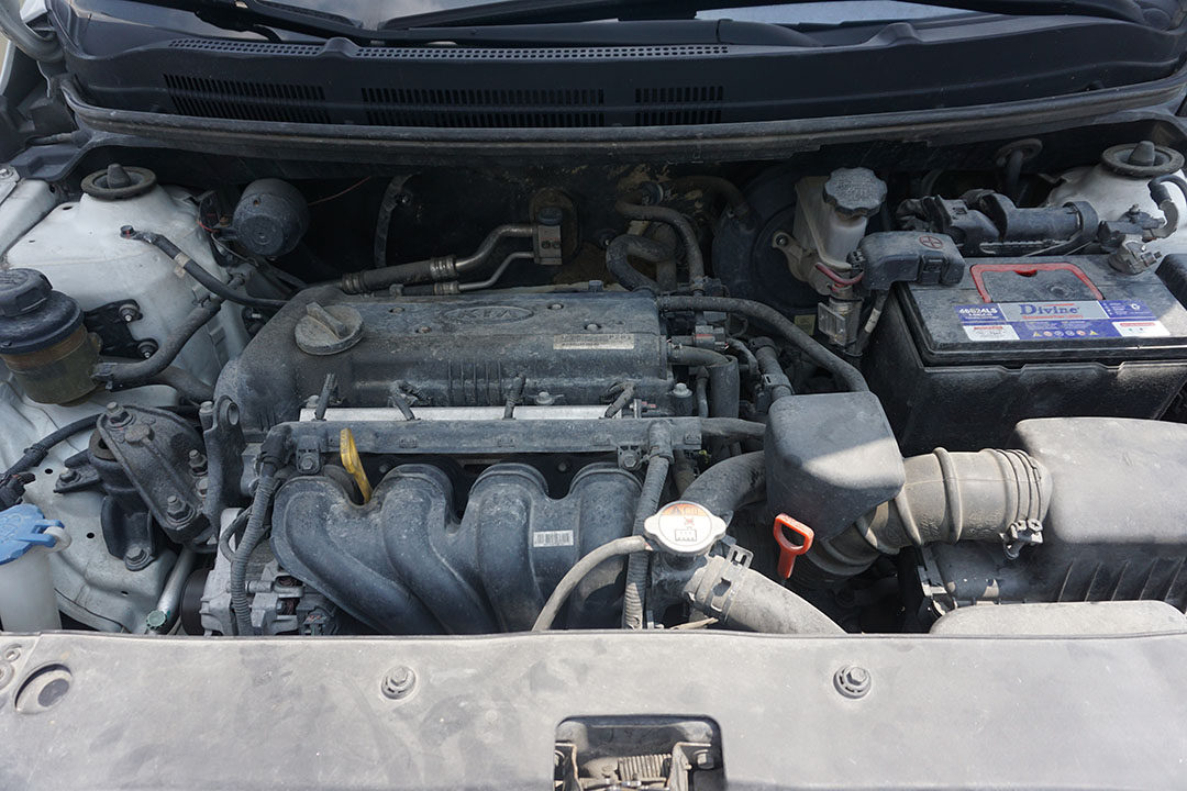 教授亲身试了一下这辆起亚K2,老实说车况并不算太好,点火之后打开机舱盖,发动机抖动得很厉害,倒挡顿挫感明显。所以说大家购买二手车的时候,判断出两梁六柱四避震没有问题之后,一定要试车。虽然大多数二手车商不会让你把车开出去,但是原地试车还是可以的,借此我们可以判断一辆车的车况好不好,从而放弃或者进行一番砍价。
