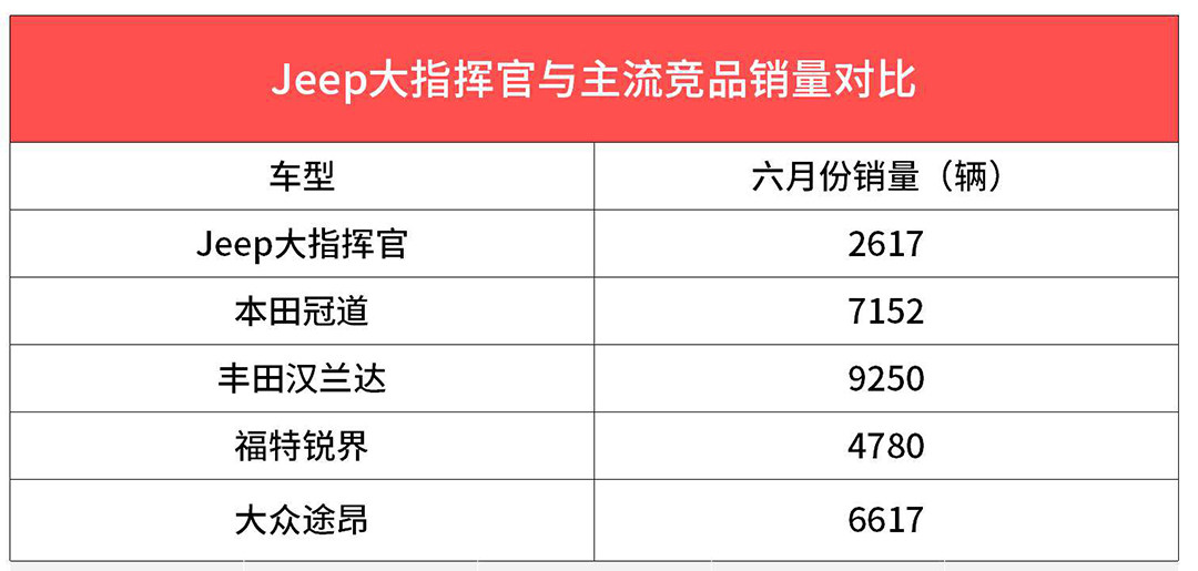 几乎每一款中型SUV上市便瞄准了汉兰达,包括大指挥官,它还有一个较为特殊的身份——中国特供;因为上述原因,导致大指挥官在消费者层面和媒体舆论层面的关注度都非常高,但是5月份开售数据仅有326辆,令教授大跌眼镜,到了六月份销量终于有显著提升,2617辆的数据相较于两月前也是有数倍的增长,这也证明大指挥官就目前而言尚处于一个市场培育阶段。