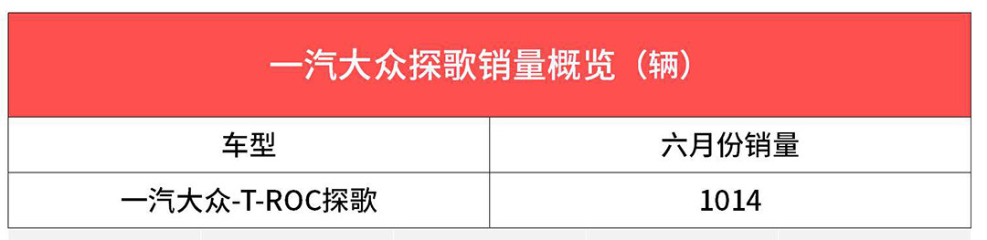 大众探歌是一款尚未正式上市的SUV,就目前而言尚处于预售层面,但在六月份的销量统计中却有了1014辆的销售数据,不免会让人对它在正式上市后的市场表现感到更加的期待。