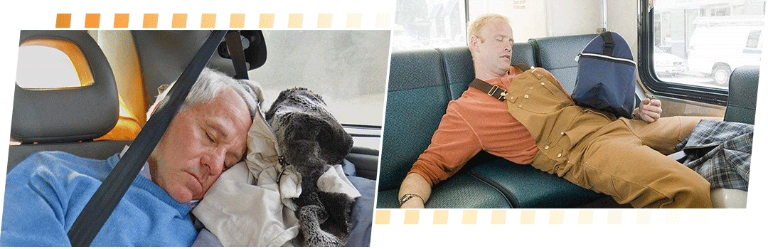 有的人坐副驾驶还喜欢把座椅靠背放平睡觉,这样也是不行的,要知道安全带角度是不会随着靠背角度变化而变化的,以最常见的三点式安全带为例,这时只有一条福袋勒住你的腹部,而胸带是悬空的,没办法收紧固定你的身体,而且平躺时身体和车辆前进方向平行,发生碰撞和急刹的时候人就会顺着座椅像箭一样发射出去。教授建议如果行车状态时想睡觉,靠背放躺角度不超过45度,让安全带胸带可以勒住你。