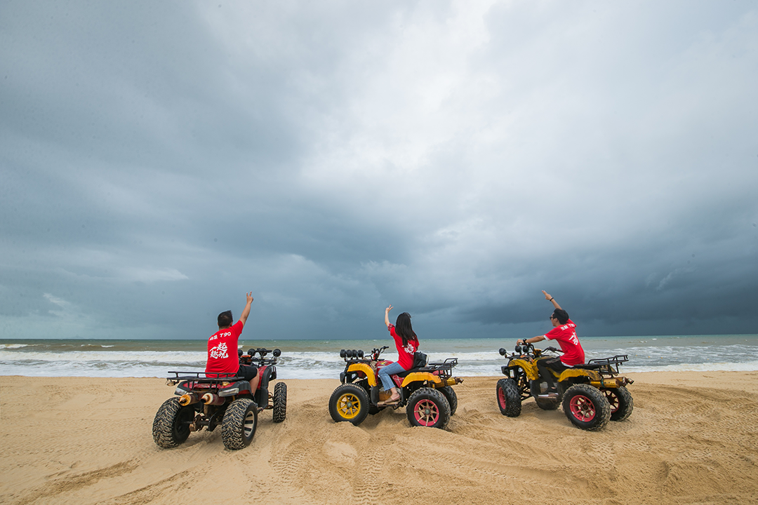 第二天,本来是抱着看日出的心情起了个大早床,可惜天公不作美,天气阴沉沉的,当地居民说这是台风要来了。趁着还没下雨,同伴问要不要赶快去试试沙滩车,好主意!