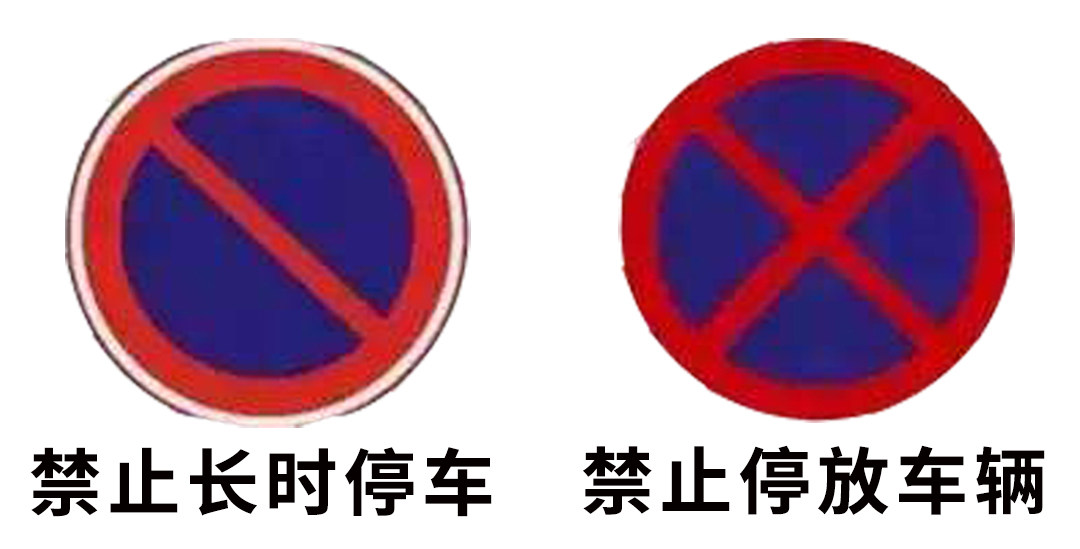 这两个图标的相似度可以说非常的高了,外围圈纹什么的完全相同,就是一个为单斜杠,另一个为双斜杠。单斜杠的为禁止长时间停放,但可以短时间停放上下客或者搬运物品;而双斜杠则表示禁止停车,不论时间的长短。