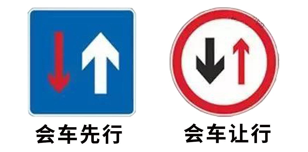 两者图标文字虽然只有一字之差,但是所表达出来的意思却是两个方向。会车先行的意思是有避让条件的车要让无避让条件的车先行;而会车让行表述的意思是会车时面对标识的车辆必须给对方车辆让行。