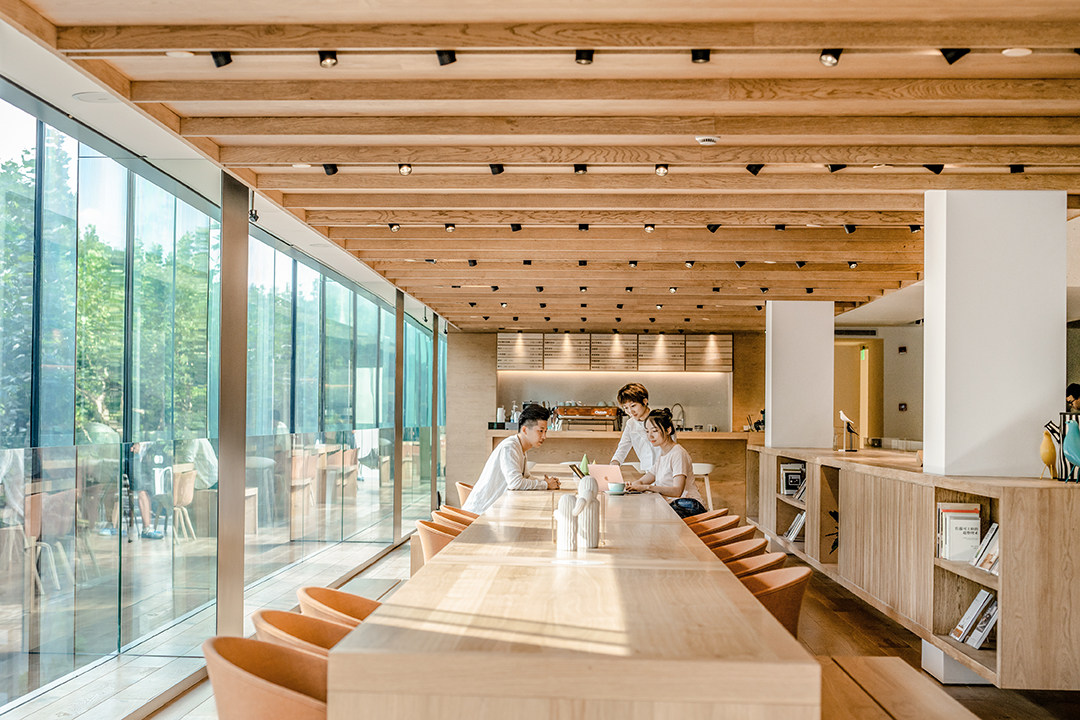 敢于建立在地标性建筑的蔚来中心自然有它的过人之处,首先它不是类似传统的4S店或展厅,用李斌的话来说:我们想要打造一个朋友聚会的地方。一个长桌,一群好友,最惬意的莫过于此。