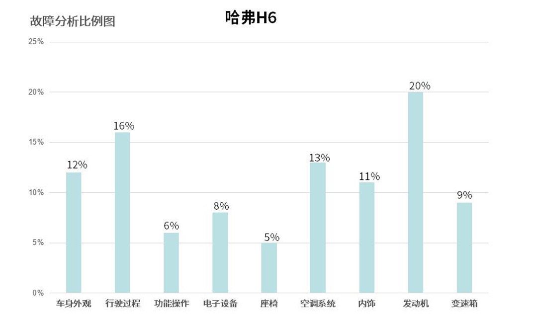通过上面4车的故障分布图可以看出,目前自主品牌车型的质量问题主要都反馈在车身、行驶过程、发动机和变速箱四大块上,这四大部分的故障都占各自车型故障总和的50%以上,可见老生常谈的国产车型三大件质量水平确实需要着重加强,另外空调系统的故障也比较突出,都占故障总数的10%以上,在炎炎的夏天,没什么比空调问题更难忍受了。欣慰的是,反馈在电子配置上的不良问题较少,均占各自车型故障总数10%以下,证明虽然国产车以配置多为竞争优势,但并没有因此而对质量有所松懈。