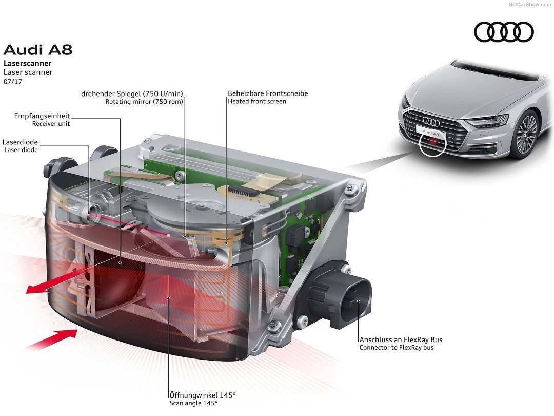 要实现全自动驾驶还有多远距离?我们目前已经量产的典型例子是:奥迪A8L,可以实现L3级自动驾驶, 要根据路况作出判断,主要是看【眼】和【脑】,眼就是雷达了,A8装备了12个传感器,距离感应雷达这些是比较低端的暂且不谈,主要还是它有一个激光雷达。