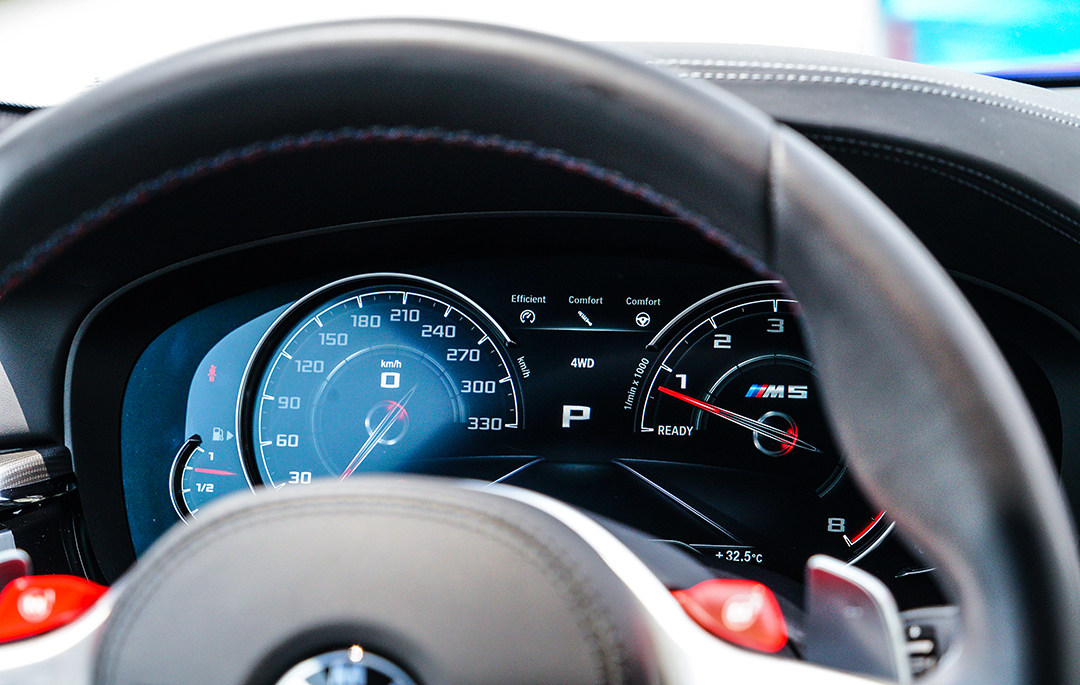 你可以随时在4WD、4WD Sport和2WD(需DSC OFF时)三种驱动模式中切换,不过需要提醒的是,即便是4WD Sport模式,也是更偏向于后驱的状态,而在2WD下,你将找回这辆M5最纯粹最原始的野性,如非高阶玩家,还是老老实实让四驱系统正常工作吧。
