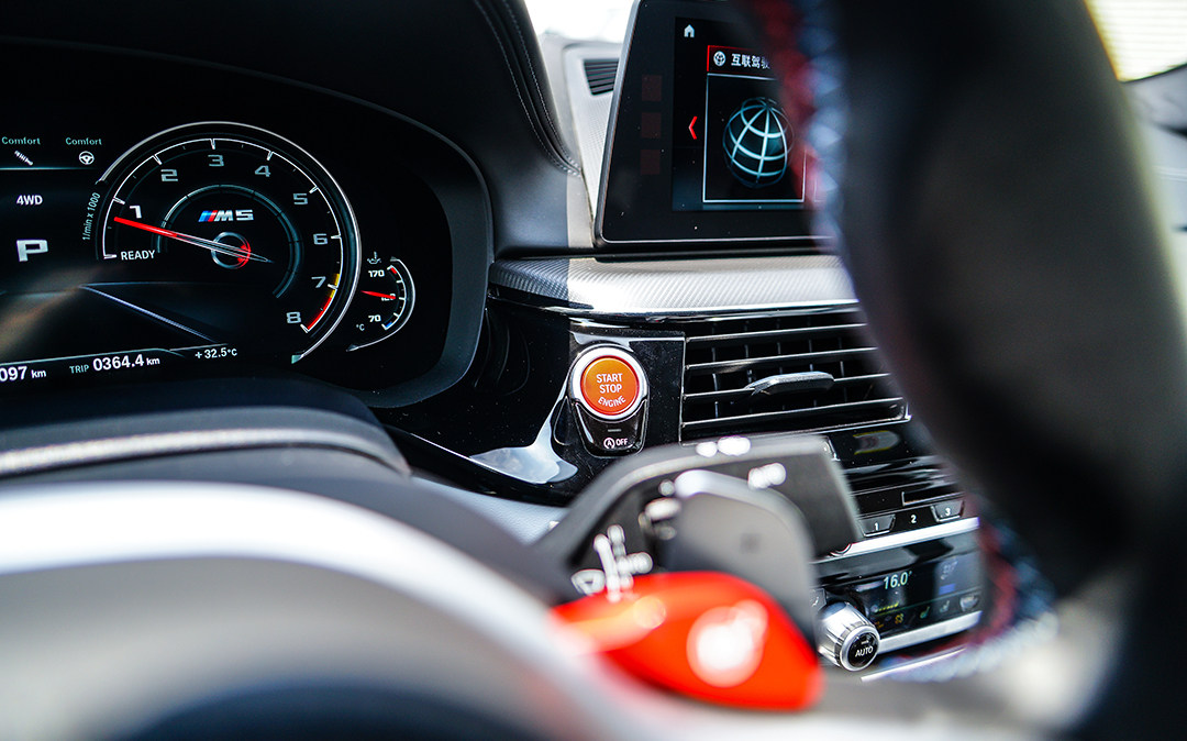 在其余M车型上我们也能见到M模式的设定按键,只是这回,全新M5把两个按键用醒目的红色标注,搭配上全新样式的电子档杆,车厢内氛围实在是让人热血沸腾。