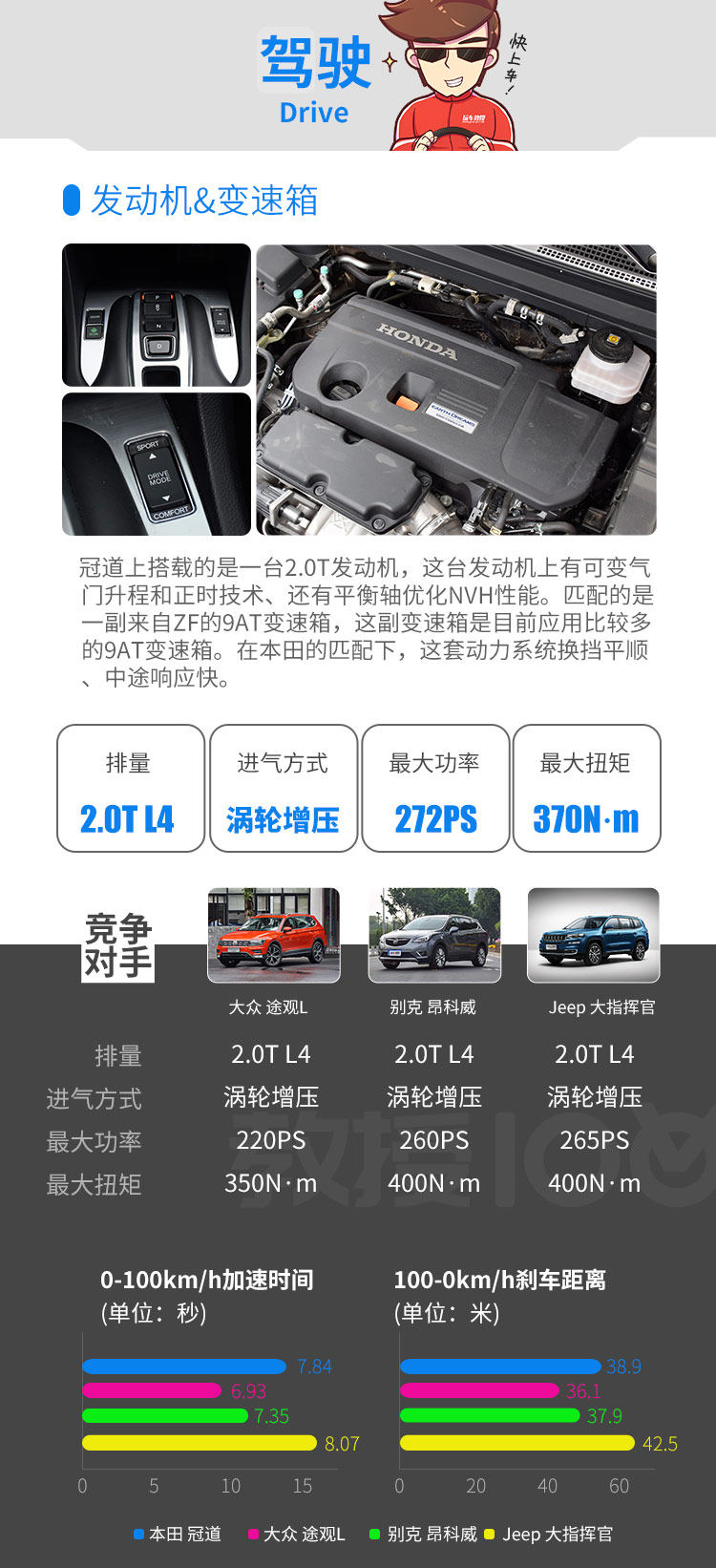 第一次坐在本田冠道的驾驶座上,我左顾右盼,生怕蹭到别的车。接触了两天之后,我觉得冠道跟超跑GK5开起来很相似。本田,把运动的灵魂装进了中型SUV上。这就是冠道。