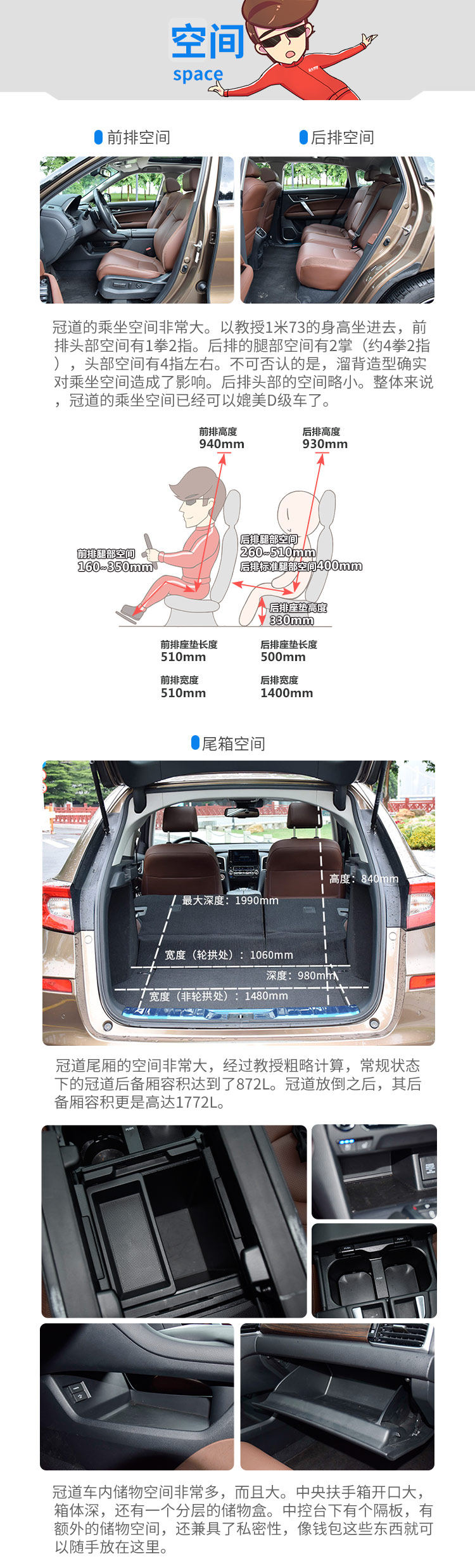 总结:冠道身上最惊艳的地方就是空间和驾驶方面。冠道的乘坐空间在同级拿第一没有任何悬念。冠道是在7座车的尺寸下放5座,无论乘坐空间还是后备厢空间,都是当之无愧的同级第一。冠道的驾驶值得称道,发动机的动力水平和响应速度都是第一梯队的级别,底盘的调校水准更是无与伦比。全系标配的可变转向比的加入,冠道灵活得像台超跑GK5。不过冠道的保养费用在同级来说,确实是比较贵的,这点需要注意。