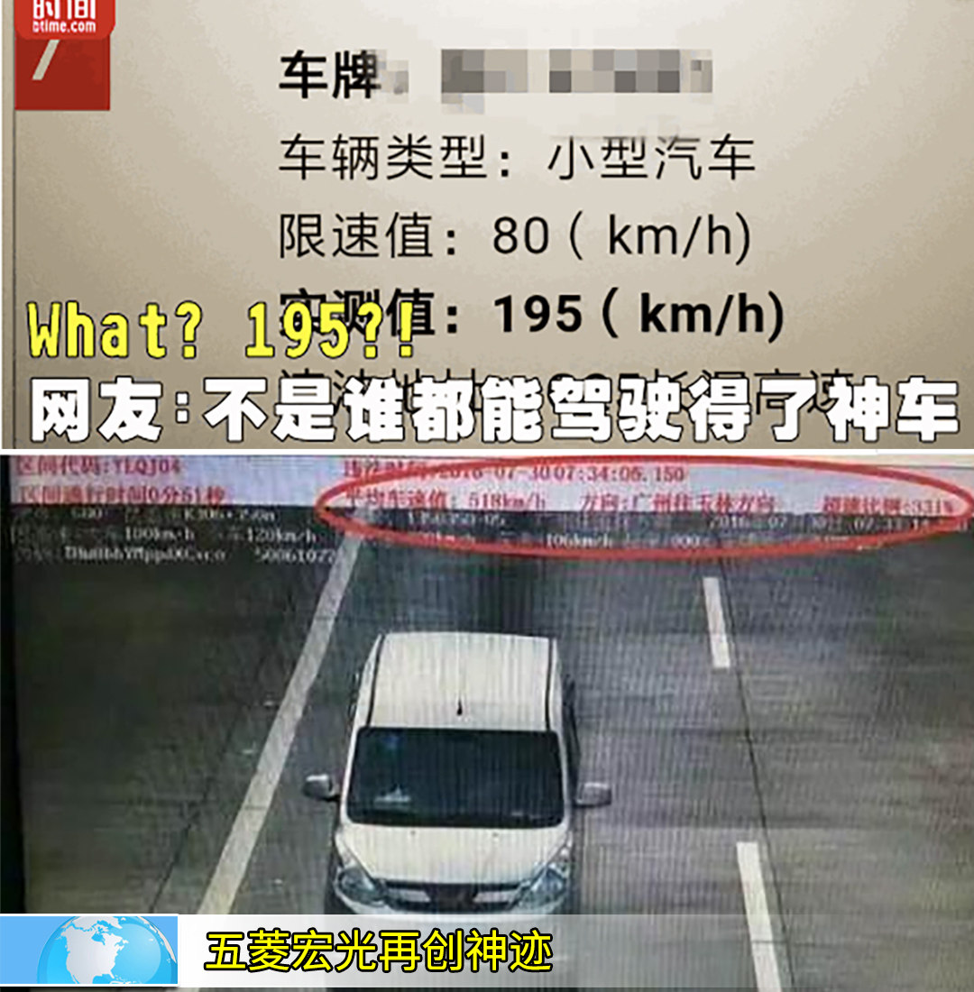 #车钥匙给你,你开给我看# 五菱宏光又创下神话啦,在限速值80km/h的路段上,五菱宏光实测值居然达到了195km/h,然而,这还不算最厉害的,最神奇的是发生在广东往玉林的高速路上,五菱宏光飙到了518km/h,超速达到3331%!真是插上翅膀就能飞啊,教授似乎找到五菱宏光称神的原因。