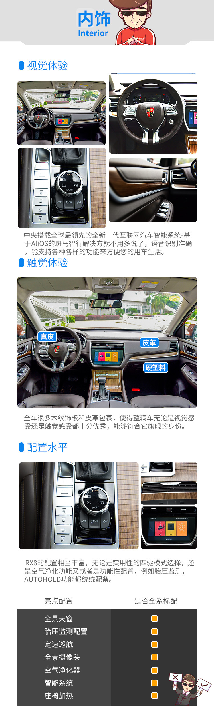 RX8是荣威在中国式豪华SUV市场中的首次尝试,无论是做工用料,又或者是其用力程度都是比荣威任何一款产品要猛。悬挂舒适,大梁车架,为车体提供不错的刚性,动力输出顺畅,没有太大的毛病;空间足够能够乘载7人,这些你还有什么投诉的吗?即使RX8在某些方面会有不足,但不管怎样这是我们对于豪华SUV的一次尝试,这份精神以及决心值得我们为之鼓掌。