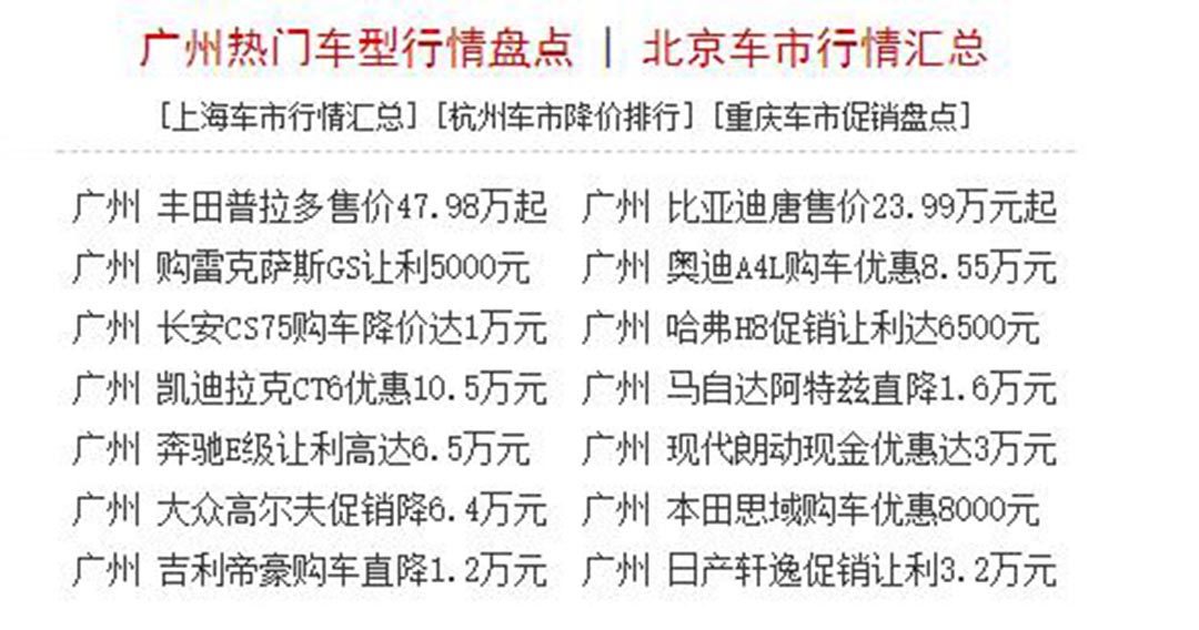 没错,你在买车之前肯定会上各大网站去了解一下优惠的行情,大概心理有数,然后去到4S店,问优惠有多少,销售顾问给你报价后你肯定会说,不对啊,网上优惠比你说的大很多啊。