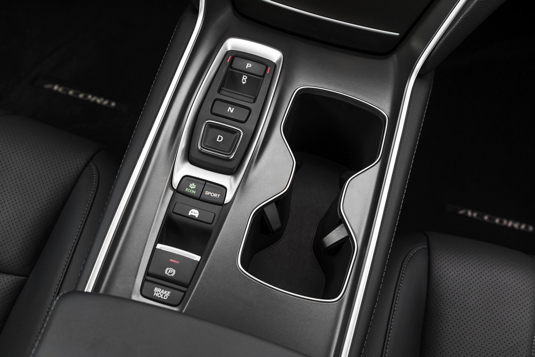 第十代雅阁锐·混动与汽油版车型内饰相比最大的亮点在于由机械式换挡杆变成了电子换挡,与机械式档杆相比电子换挡在逼格上及使用起来都更方便,更加彰显第十代雅阁锐·混动的科技范。