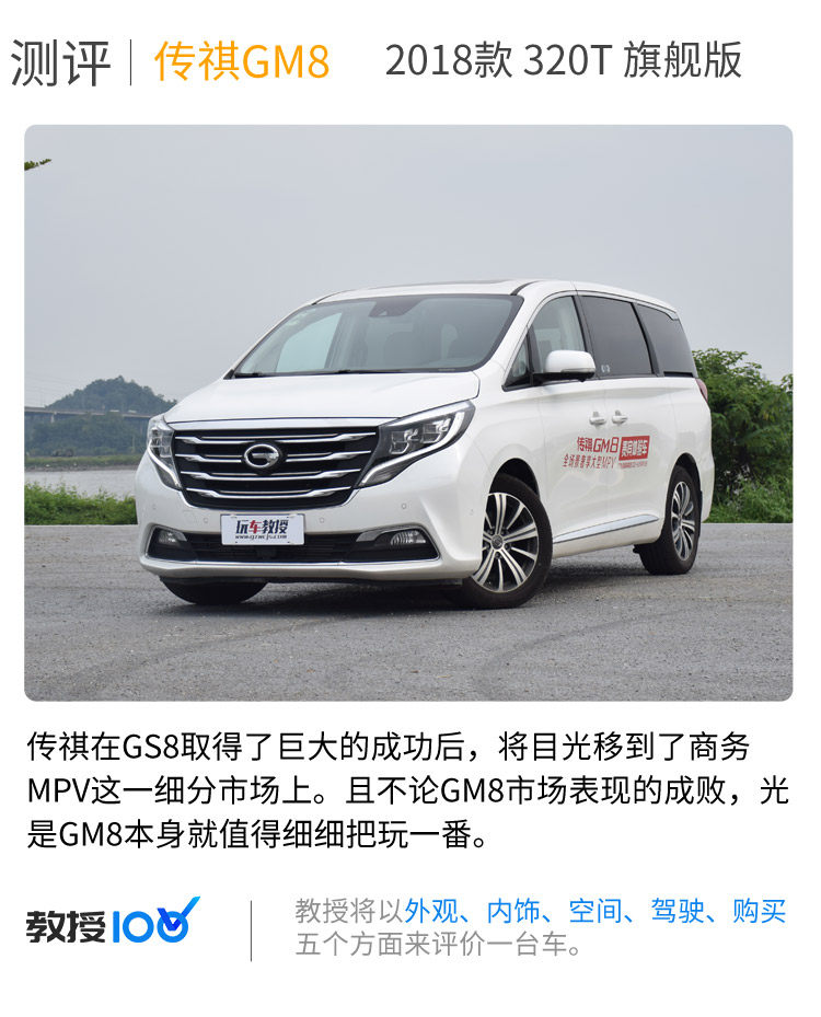 国内商务MPV这一市场长期被GL8霸占着。其他的产品要么太低端,只能叫一句面包车,要么就是家用风格浓厚,难以承担商务接待的任务。而今天,我们要测试的这款车型,很有可能就是GL8未来十年要在中国面对的主要竞争对手——传祺GM8。