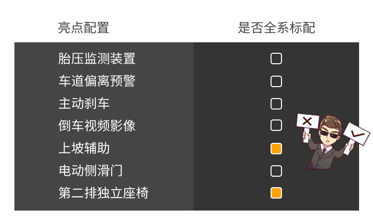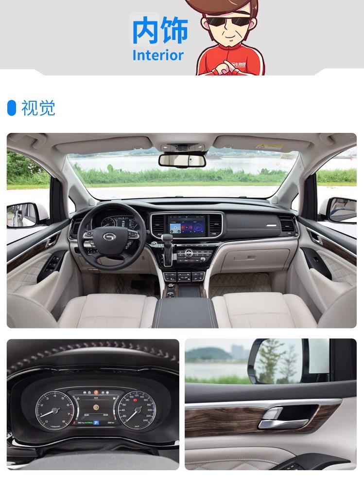 传祺GM8标配的配置不多,入门版配置较低,连倒车视频影像也没有,对于一款视野比较差的MPV来说,是一个扣分项。性价比较高的是售价为21.68万的尊贵版。