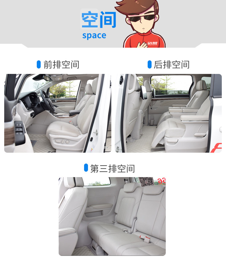 日常驾驶的时候,GM8的动力响应不算积极,给油需要一小段时间才能给到动力。而且GM8的视野不是很好,如果坐姿低,视野不好,坐姿高,有种开货车的感觉。所以,这台车还是配一个经验老道的司机比较好。而且GM8的第二排舒适度比第一排要明显好很多,第一排离前悬挂比较近,所有震动都会很直接地传递到乘员身上,而第二排的表现则会好很多。