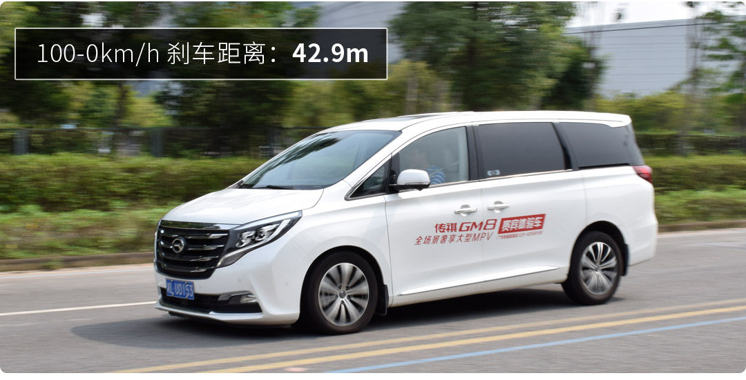 刹车的成绩也受限于轮胎,GM8的刹车点头姿态不算太过严重。由于刹车时,大部分负载向前轴偏移,所以对前轮的考验格外严格。