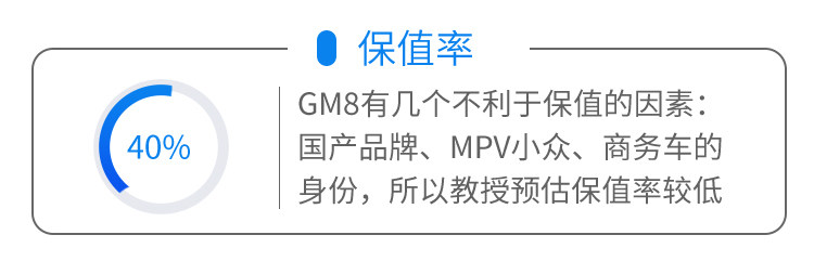 总结:传祺GM8本身车辆的品质不错。在驾驶方面由于MPV天生的劣性,2吨的车重还有格外注重耐用性而非性能的发动机,传祺GM8在这方面吃亏较多。另外,GM8虽然还没有具体的5年保值率数据,不过以教授的经验来看,GM8的保值率不会太高。除了这两点以外,GM8确实无可挑剔