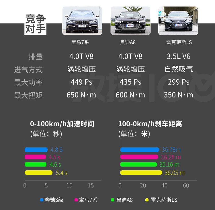 今年,我们实测了宝马7系、奔驰S级、奥迪A8和雷克萨斯LS四台大型豪华轿车,相比较其它三款的偏科来说,S级显然是最全面均衡的一款,可以说S级是方方面面没有短板的一台车,即便是用挑刺的眼光看这台车,也很难找出明显的缺点,确实十分难得,这也对得起汽车发明者再次发明汽车的口号。