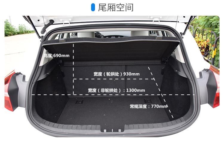 行李箱较为规整,行李箱开口大,但是底部不是全平的。整体容积表现一般,在第二排座椅没有放倒的情况下,整体的容积为330L。在第二排座椅放倒后,才有1042L容积。