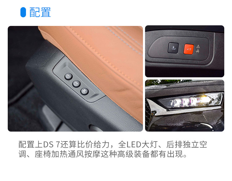 主观噪音感觉上DS 7确实比较安静,这也符合其豪华SUV的自身定位,再加上偏软的悬挂,DS 7的舒适性确实不错。