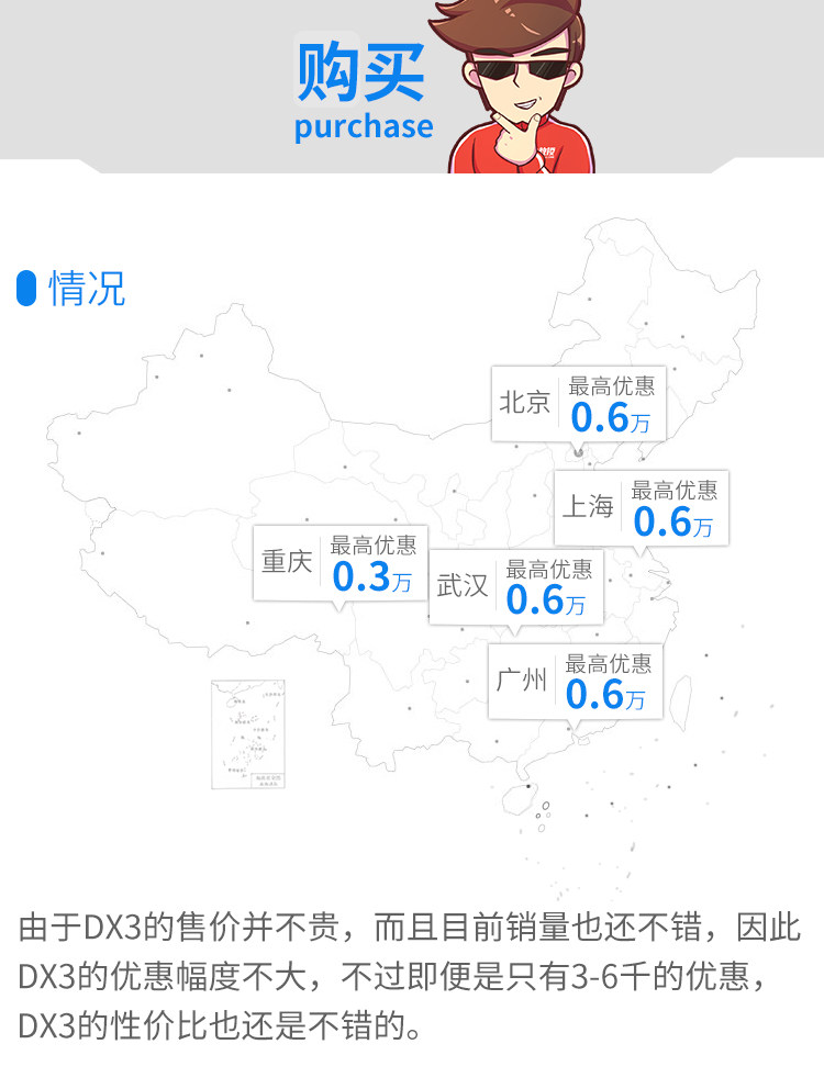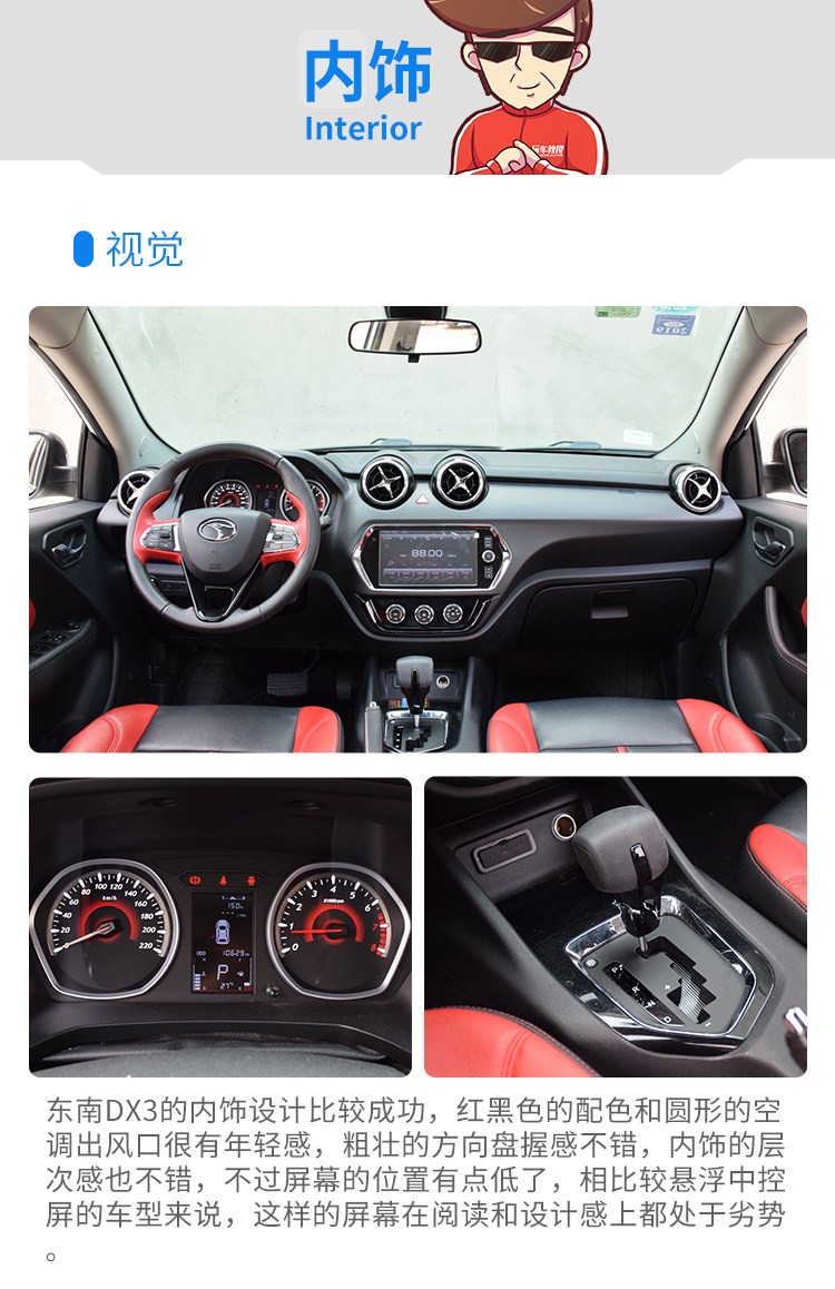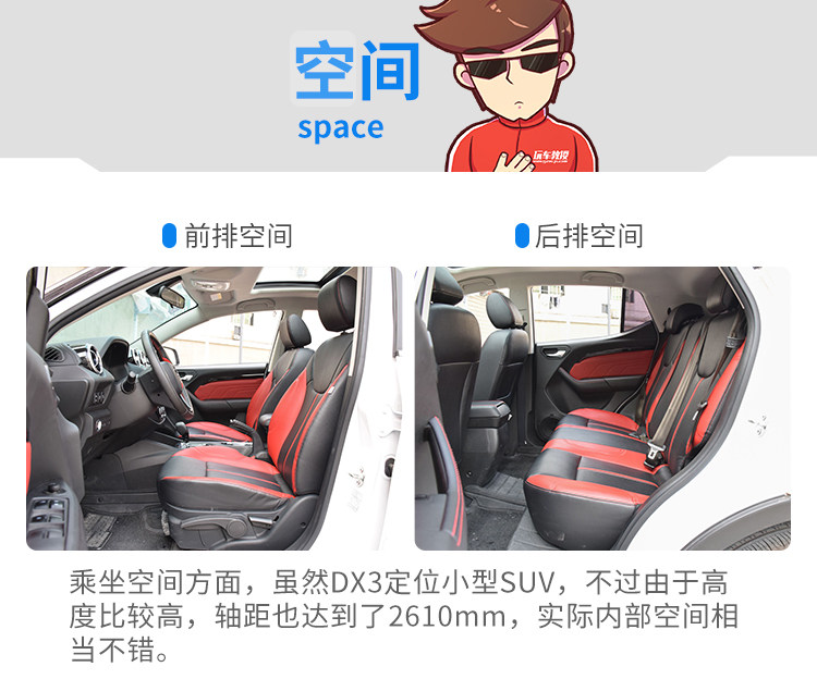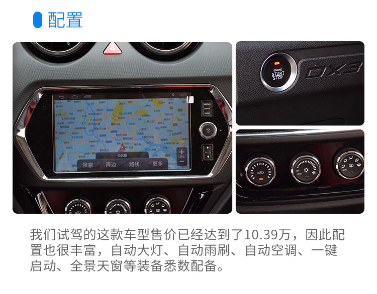 虽然DX3的噪音超过了指导值,不过实际上DX3的车内听感还是可以的,高速时的风噪也不算很大,不过发动机噪音比较有颗粒感,感觉较为粗糙,甚至有种三缸的感觉。