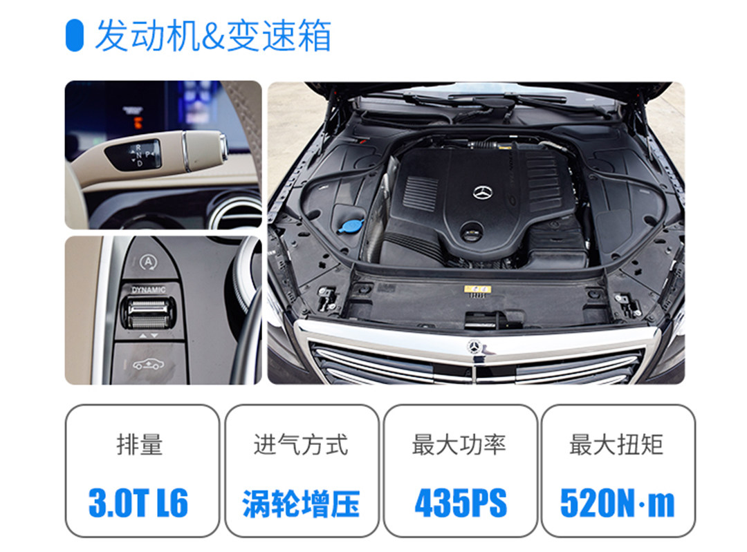 在奔驰S500L上,电子涡轮、9AT等黑科技的加持让车辆保证了平顺性,但排量下降带来的低扭损失,会让车辆在驶过坡道或其余起伏路段时,变速器需要频繁地变换挡位以获取足够动力。