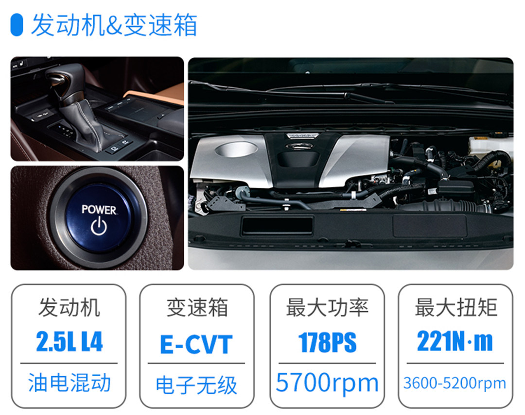 雷克萨斯没有选择给ES换上涡轮机器,他们习惯保留传统但做到极致。ES300h依然搭载的是2.5L自然吸气发动机,但发动机热效率达到41%,匹配上88kW的电动机,ES300h官方的百公里综合油耗为4.2L,我们实测在6L左右。