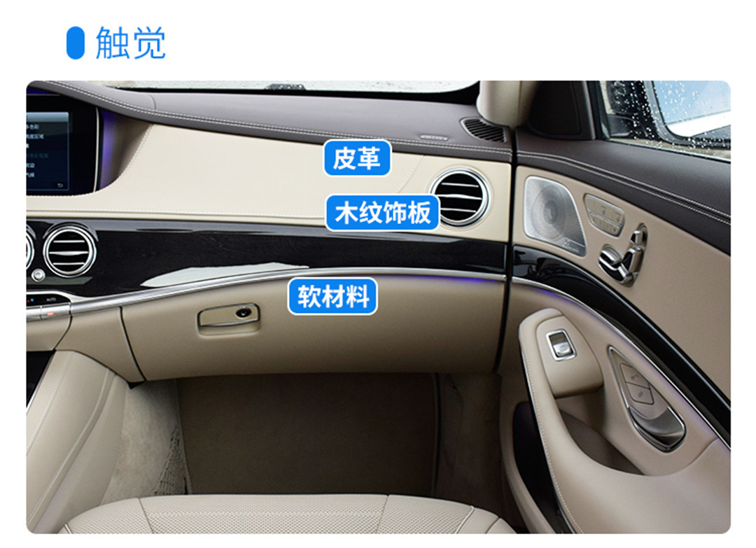 人体能接触到的地方,S500L都用上了柔软细腻的皮质覆盖,上乘的用料搭上出色的工艺,这是S级作为奔驰家族旗舰才拥有的待遇。