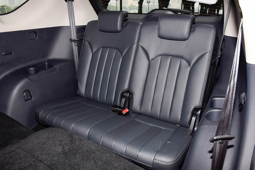 不过,它是一台7座车,第三排座椅和很多7座SUV一样都不能正常坐下一个成年人,需要你把中排的座椅往前移动一点点,就能够放下双腿。但我个人觉得,一般的7座SUV第三排座椅很难做到像拥有厢式车设计的MPV那么好,没错,哪怕是汉兰达也做不到。