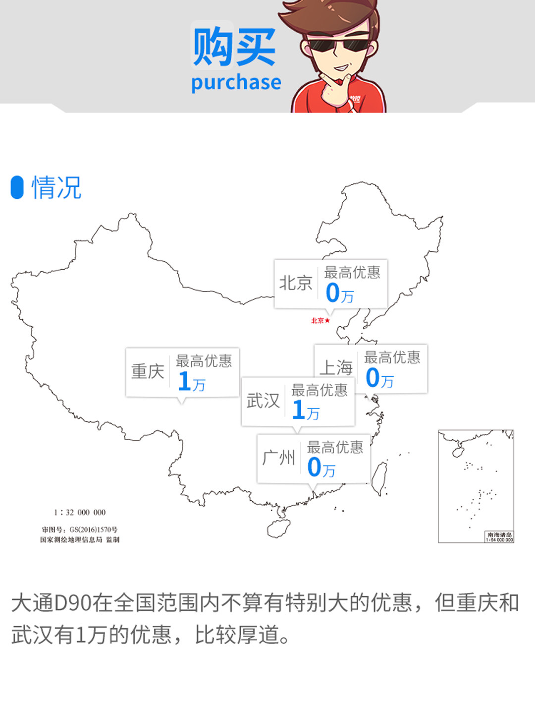 最后,大通D90是一台十分适合于喜欢越野而且日常又有装载需求的人群,大梁式的车身有足够的刚性,日常家用,空间大,动力充足,是一台宜家宜野的SUV,15万起的售价,在同级别中也是相当出色的性价比,要知道荣威RX8和传祺GS8、哈弗H9等都比大通D90要贵不少,所以说注重性价比的您可以看看大通D90。