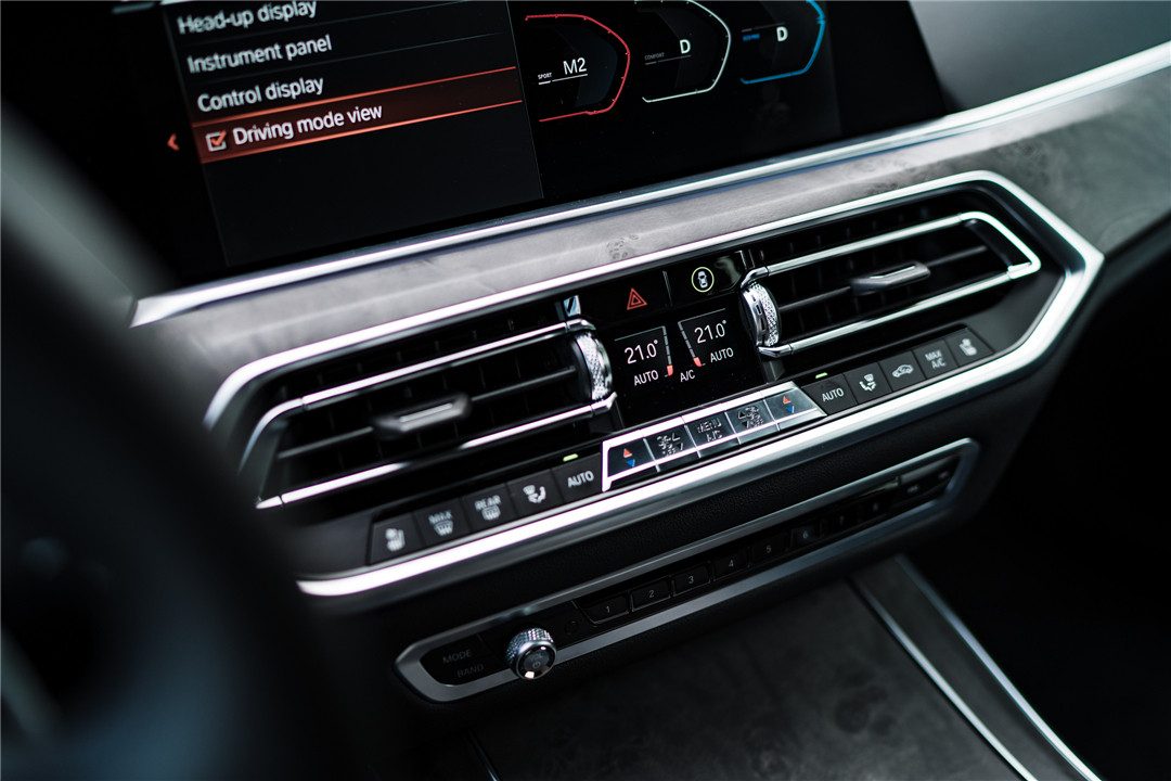中控台整体设计更加简洁,更少的按钮以及横向设计的中控台也符合当下时代趋势,内饰的造型也和即将到来的全新Z4相近,车内大量使用皮质材料和哑光铝质感的饰条/按钮,看上去档次感十足,两个空调出风口之间的温度显示区看上去也很有设计感,教授不得不感慨,X5的内饰终于有了不少新意。