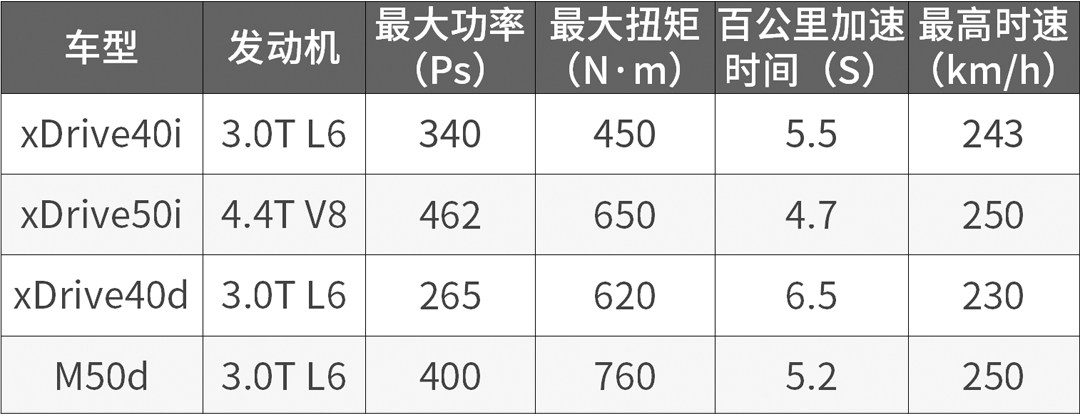换了更强大的发动机之后最直接的提升就是性能了,全新一代宝马X5 40i车型的百公里加速仅需5.5秒,不仅比现款3.0T车型快了整整一秒,也超过了同价位的同排量的保时捷卡宴和玛莎拉蒂Levante 350Hp车型,并且官方百公里油耗为8.5-8.8L/100km,不过这个油耗你们肯定不信,我也不信。