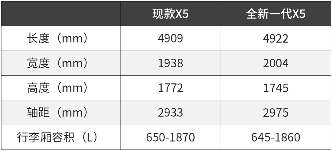 相比前代车型,全新一代X5的长度宽度和轴距全面加大,这也就意味着X5的内部空间和外部气场相比较前代车型更加优秀了,实际上全新一代X5的内部空间确实相当宽裕,无论是前排后排拥有的都不仅仅是一席之地。