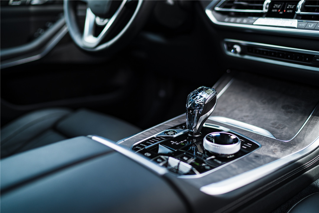不过真正让人惊喜的还是它的细节,全新的iDrive操控区设计更规整也更简洁,使用起来也更加人性化,材料运用上也别出心裁,在一键启动按钮、电子挡杆、音量调节旋钮、iDrive旋钮等地方大胆地使用了工艺级水晶材质,虽然水晶材质并不是X5第一个使用的,现款沃尔沃XC90上就有水晶材质挡杆可以选择,不过X5上的水晶材质更有质感,也正是水晶材质的运用使得X5的内饰在精致感上超过了自家旗舰轿车7系,甚至和奔驰S级相比也毫不逊色。