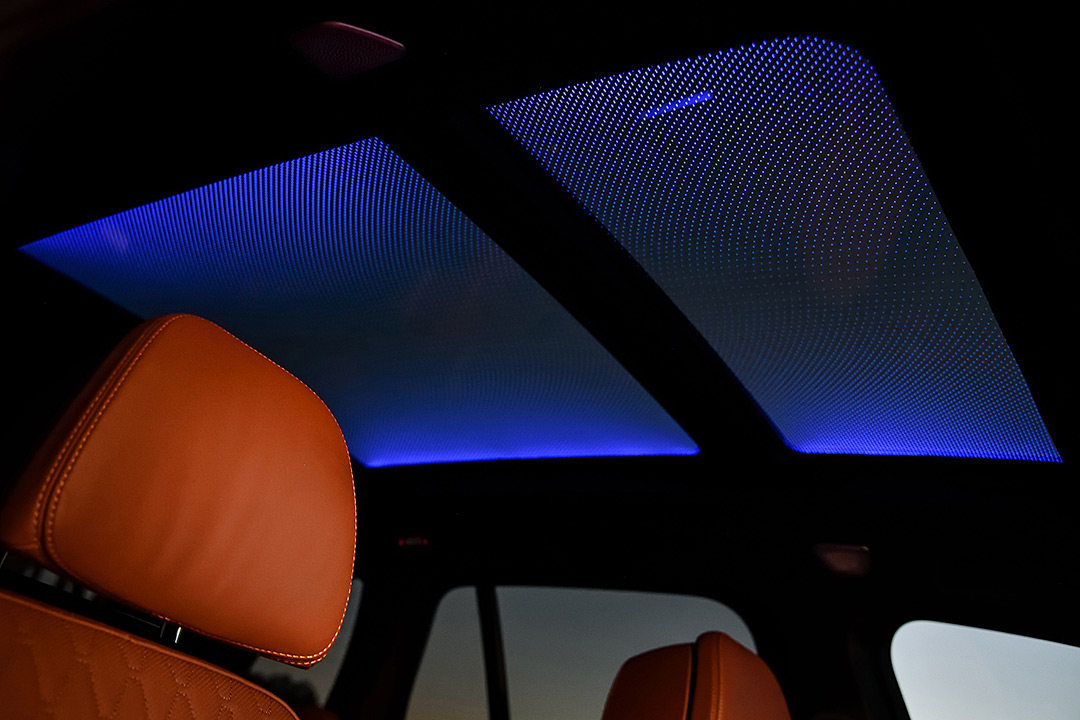 星空全景天窗也很有看点,不仅天窗尺寸相比前代车型增大了30%,而且在天窗表面还均匀分布着灯珠,可以点亮超过1500种图案,夜晚星空全景天窗点亮之后的效果十分梦幻,可以说宝马X5换代最大的升级就在内饰上,更有科技感和档次感的内饰相信能吸引不少人,和宝马Z4相似的内饰,源自8系的液晶仪表盘和水晶挡杆,这一次宝马终于在内饰上打了个翻身仗,昔日X5最让人诟病的地方,成为全新一代X5的亮点所在。