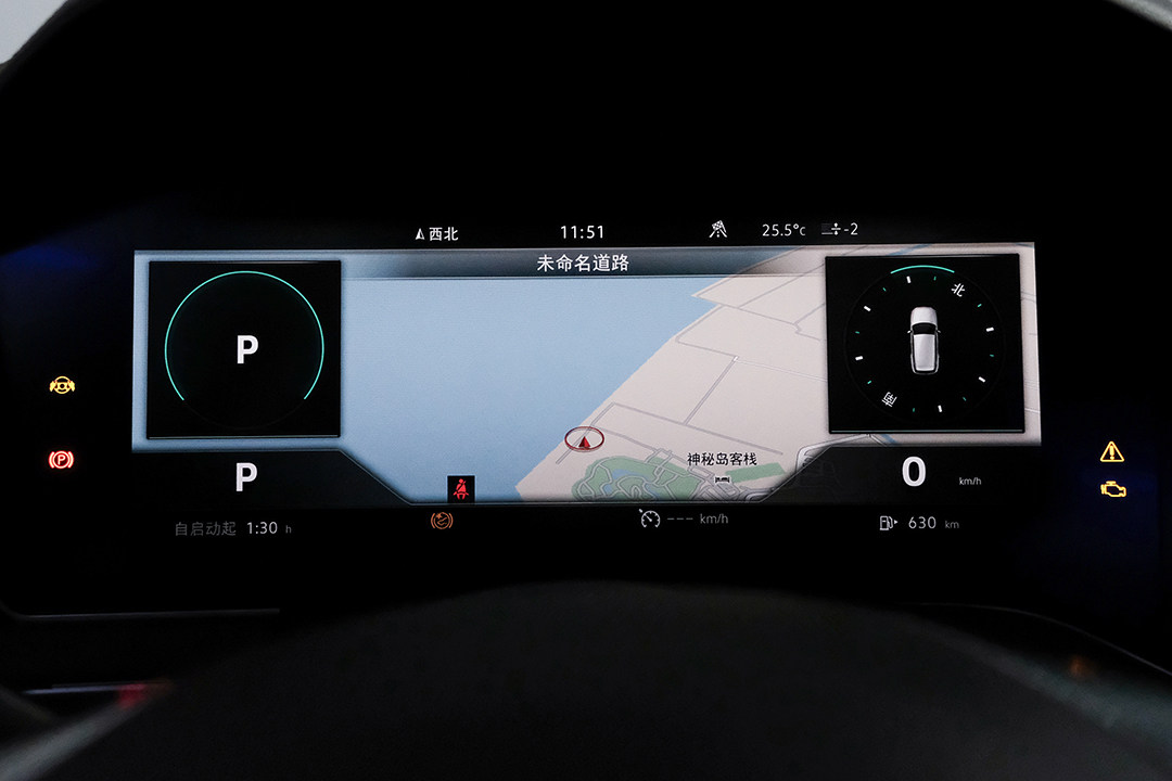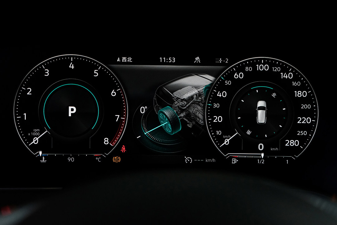 12.3寸液晶仪表盘也可进行自定义设置,越野模式下的转向角度显示科技感极强。