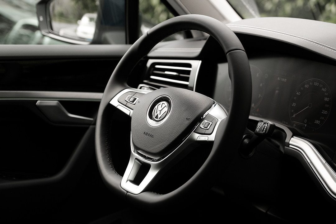 全新途锐的顶配车型配备了全轮转向系统,使其在弯道中的稳定性得到明显强化;这套系统在车速低于37km/h的时候还能让后轮实现不大于5度的反向转动,使得全新途锐的转向半径大幅减小,使其低速行驶灵活性大幅提升,开起来不会因其较大的体型而带来压力;而在车速高于37km/h时后轮则会进行小幅度的同向转动,帮助提升弯道稳定性。